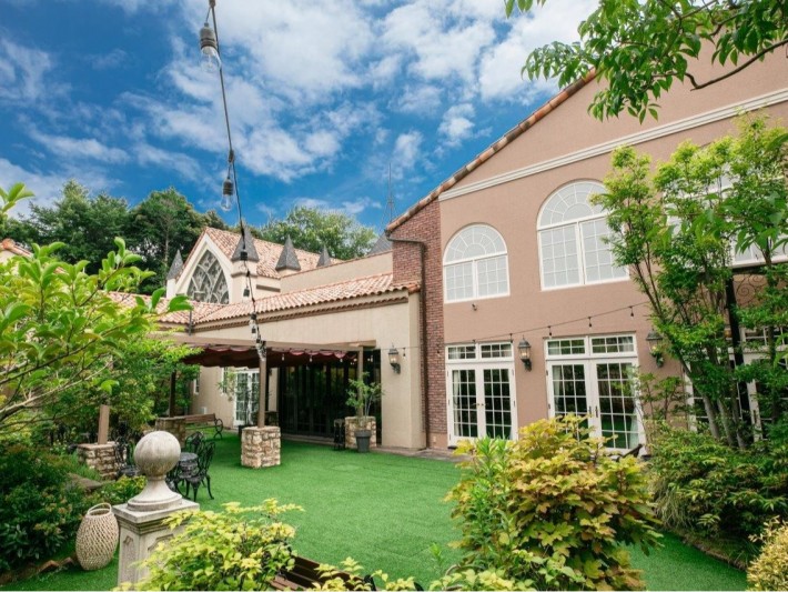 緑あふれる貸し切りガーデンとクラシカルな建物が調和し、