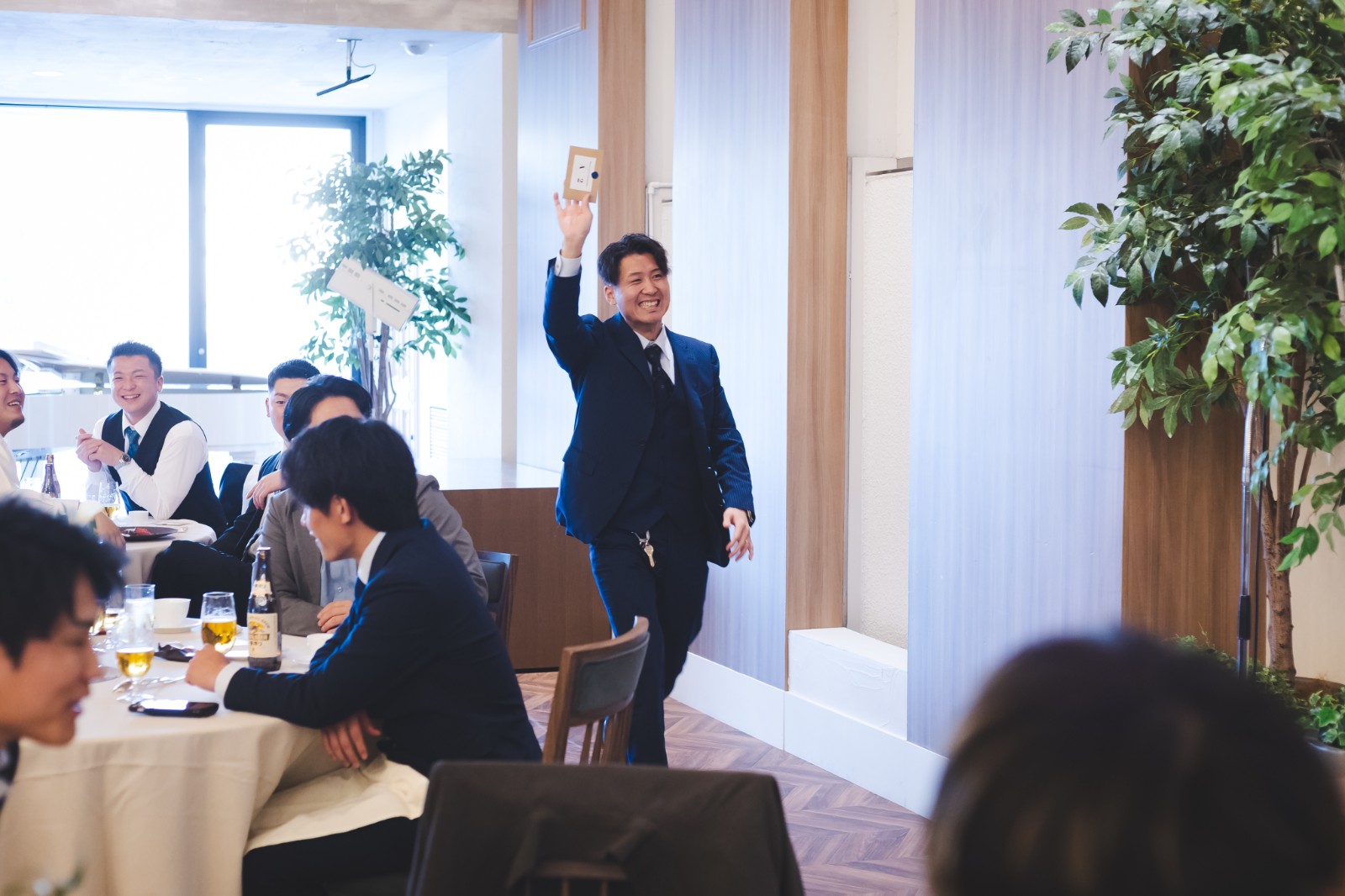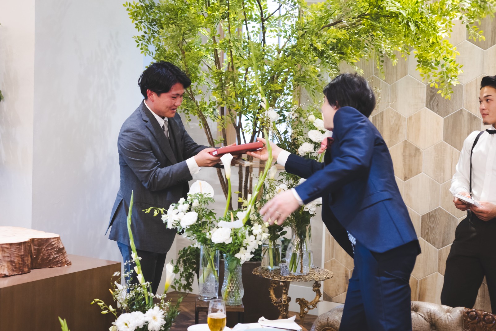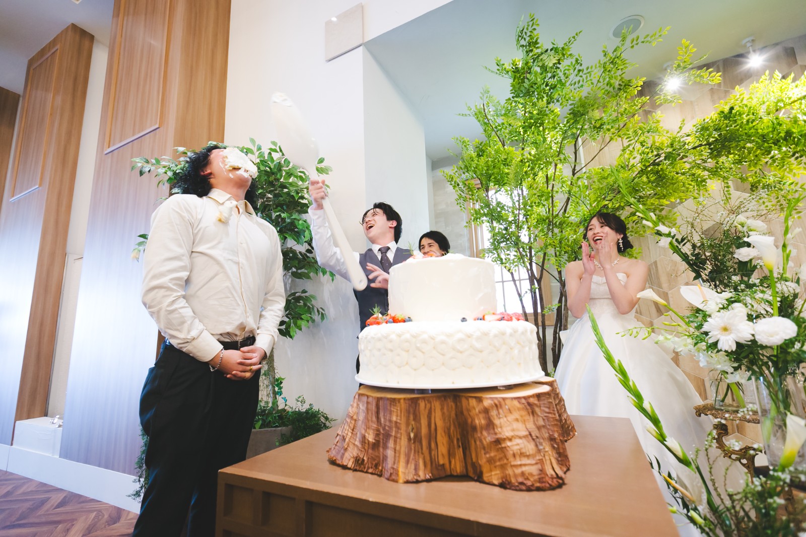 新郎様の驚いた表情や、楽しく温かいご友人からの眼差し⋯!